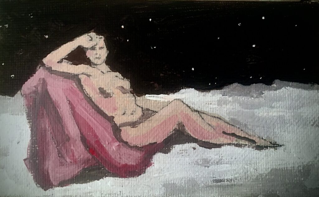 First Woman on the Moon Series | Canvas Board | Acrylic | 3”X5” | 3-2023